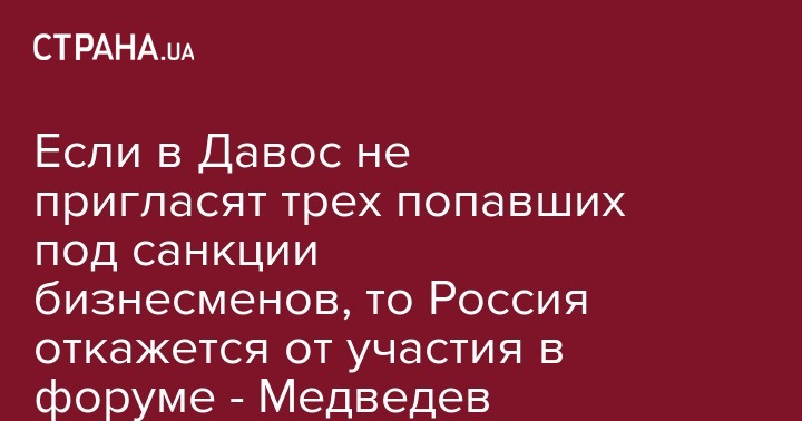 Если в Давос не пригласят трех попавших под санкции бизнесменов, то Россия откажется от участия в форуме - Медведев