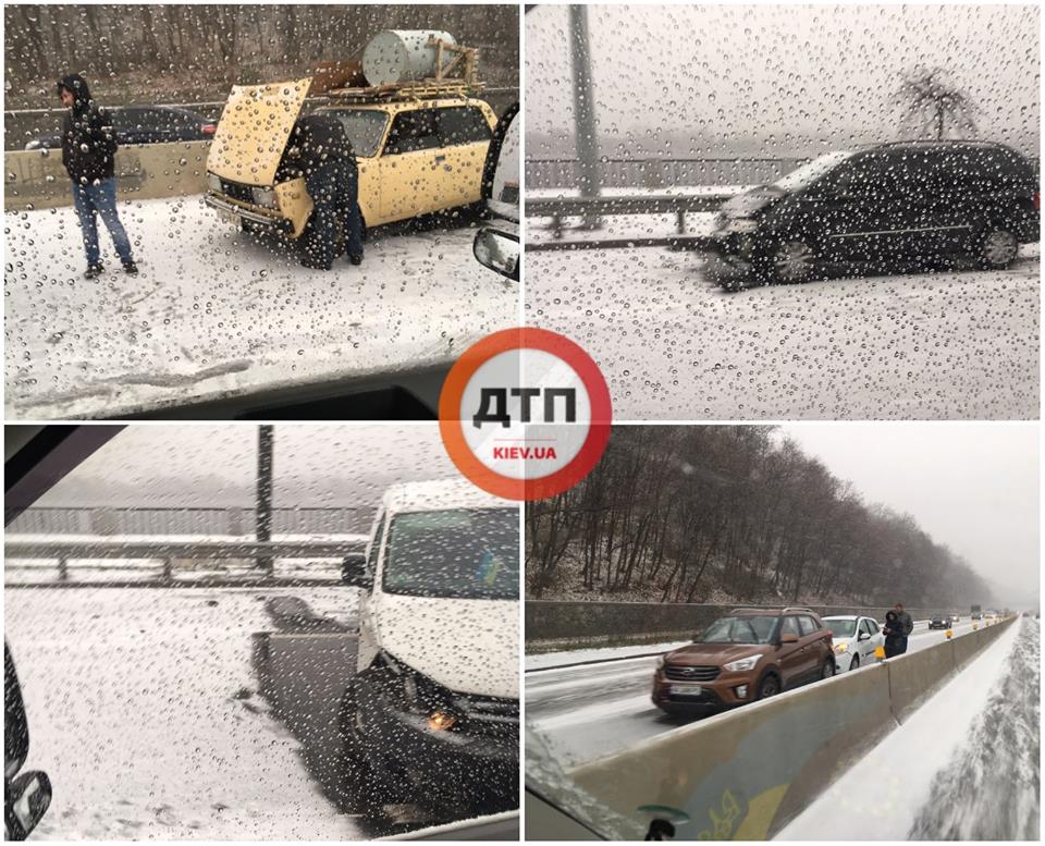 Первый снег в Киеве. Появились фото массовых ДТП с автомобилями, которые не успели "переобуться"