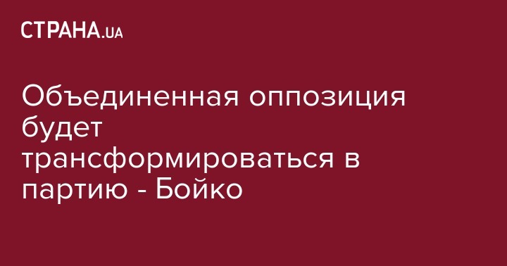 "К нашей политической платформе присоединяются еще несколько общественных организаций, политических партий. Сейчас мы проводим переговоры и уже в ближайшее время все узнают об этих организациях. Наша объединенная платформа будет в будущем трансформироваться в политическую партию", - сообщил Бойко во вторник в эфире канале 112.