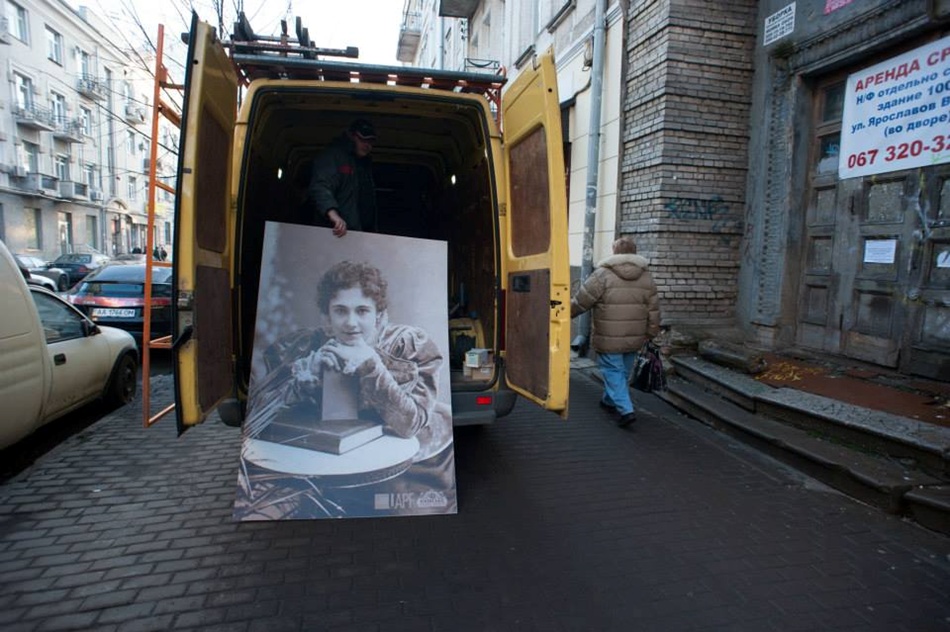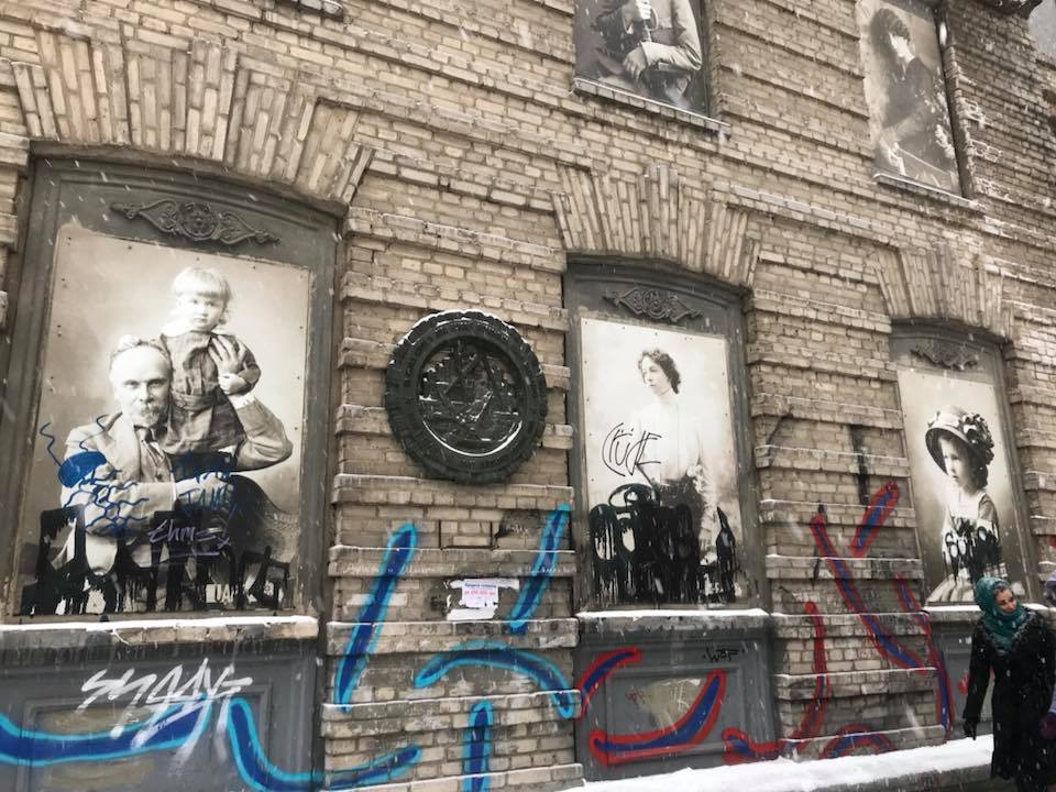 Сегодня, 14 ноября, киевляне стали свидетелями последствий жестокого акта вандализма по улице Ярославов вал, 15. Неизвестные "художники" закрасили разноцветными баллончиками фотографии старинных портретов, которые были созданы в рамках проекта Киевского благотворительного общества.
