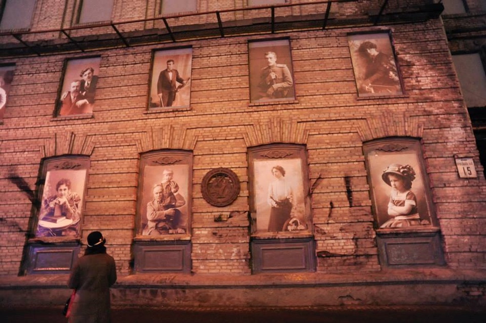 Окна заброшенного дома по улице Ярославов Вал,15 украсили фотографиями еще в 2015 году. Это дореволюционные портреты. Ретро-фотографии появились в оконных проемах бывшего отеля военных "Красная звезда". На первых двух этажах здания находилась своеобразная галерея.