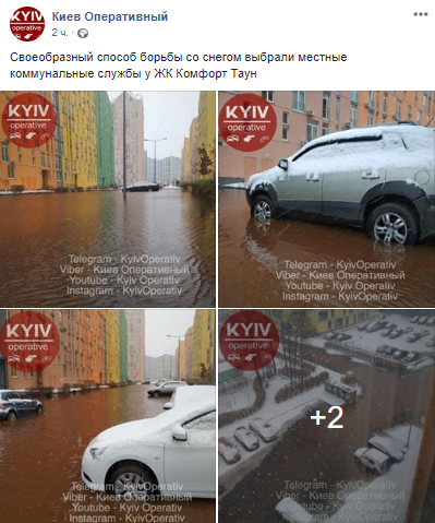 Фото бедствия опубликовано на странице сообщества "Киев оперативный. Авторы поста пошутили, что коммунальщики выбрали своеобразный способ борьбы со снегом.