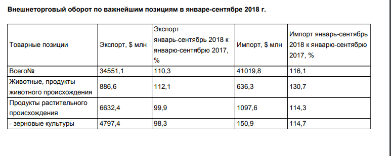 В январе-сентябре 2018 года экспорт товаров по сравнению с аналогичным периодом 2017 года вырос на 10,3%, составив $34,551 млрд, импорт – на 16,1% до $41,02 млрд.