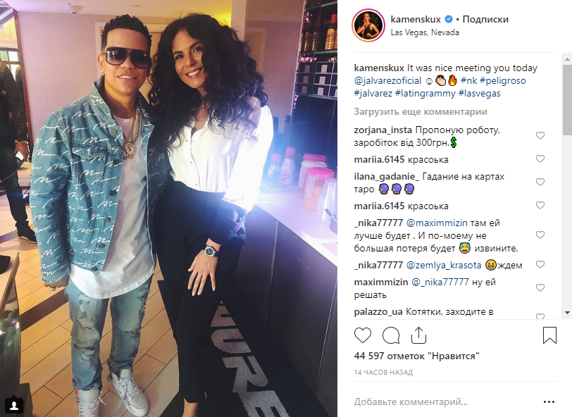 Известная украинская поп-дива Настя Каменских, которая буквально на днях заинтриговала поклонников новым путешествием, опубликовала в своем Instagram фото из Лас-Вегаса (Невада, США) вместе с латиноамериканским исполнителем Джавидом Альваресом, больше известном как J Alvarez.
