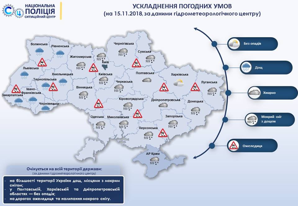 За минувшие сутки, 14 ноября, в Украине произошло 1358 дорожно-транспортных происшествий. В результате аварий пострадали 96 человек, 11 погибли. Так в одном из ДТП, на крутой улице Киева из-за снега и гололеда столкнулись шесть авто. Об этом сообщает пресс-служба Национальной полиции в четверг, 15 ноября.