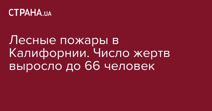 В Калифорнии не стихают сильные лесные пожары. По последним данным, число жертв огненной стихии выросло до 66 человек. Об этом сообщил шериф округа Бьютт Кори Хонеа, передает телекомпания ABC.