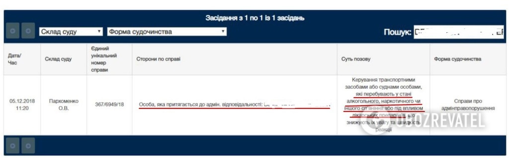 По данным издания, в конце сентября 2018 года мужчину остановили сотрудники Ирпенского отделения полиции, несмотря на явные признаки опьянения, от прохождения медицинского освидетельствования он отказался. Кроме того, у водителя не было прав соответствующей категории и документов на авто. Тогда правоохранители составили протокол за пьяное вождение и оштрафовали за отсутствие страховки на 425 грн.