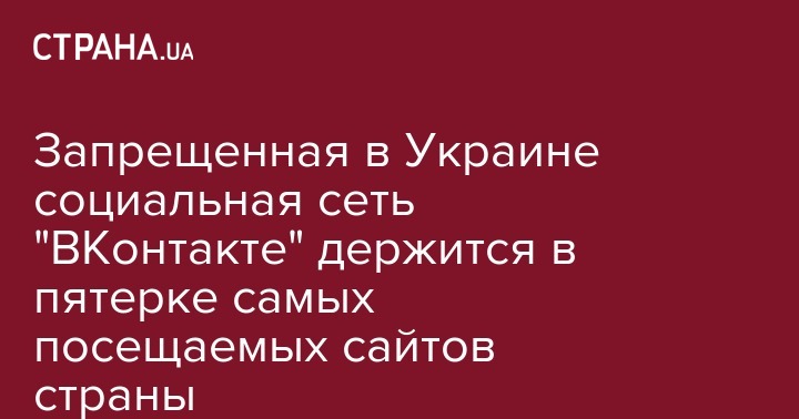Заблокированная в Украине социальная сеть "ВКонтакте" продолжает входить в первую пятерку самых посещаемых сайтов с месячным охватом аудитории - 31%.