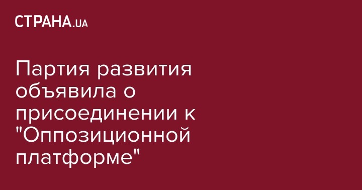 17 ноября председатель Партии развития Украины сообщил, что политсила присоединяется к "Оппозиционной платформе - За жизнь". Об этом пишет пресс-служба платформы