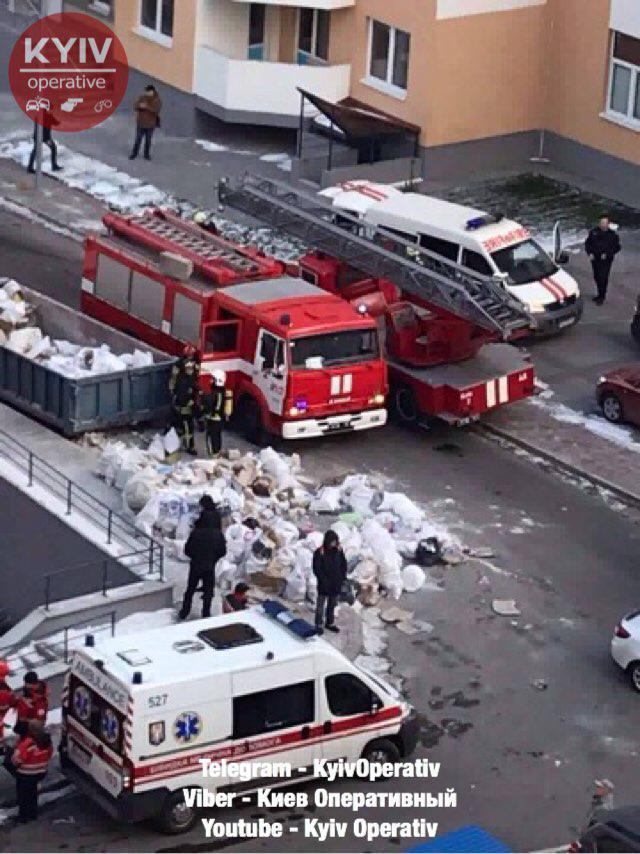 В Киеве горит новострой на Виноградаре, людей эвакуируют