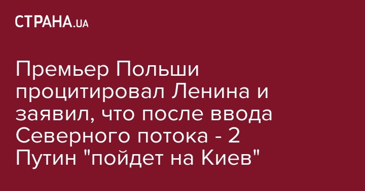 В Польше заявили, что после строительства газопровода "Северный поток-2" Россия может пойти в наступление на Киев. Об этом заявил премьер-министр Польши Матеуш Моравецкий, передает РАР