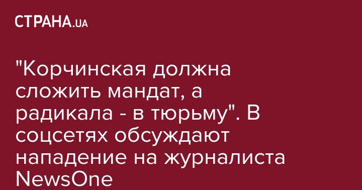Как сообщала "Страна", на журналиста NewsOne напали после того, как к нему подошла жена Корчинского и попросила "по-хорошему уйти с митинга и не провоцировать парней". Сразу после этого журналисту плюнули в лицо.