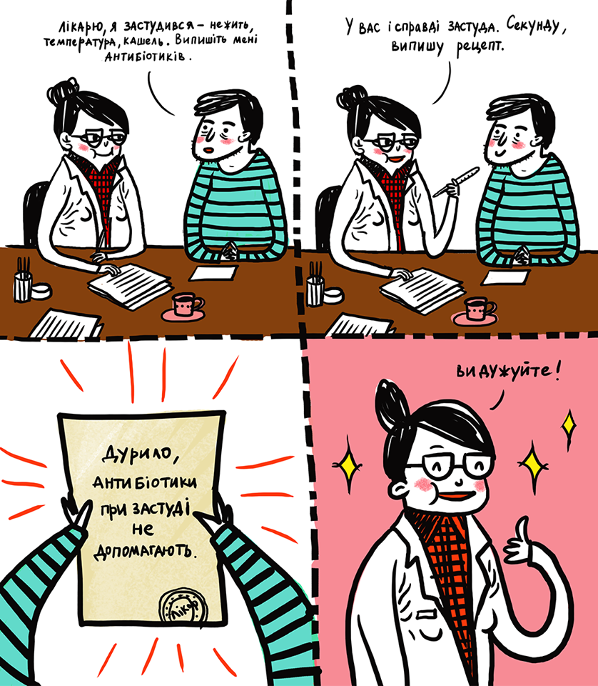 "Каждый раз, когда кто-то на планете принимает антибиотики неоправданно (а так бывает, когда человек решает выпить курс антибиотиков без консультации врача/после советы друга/просто "для профилактики") бактерии становятся нечувствительными к ним. То есть не реагируют на лекарства и продолжают и дальше разрушать организм. Это явление называется антибиотикорезистентность", - отметила Супрун.