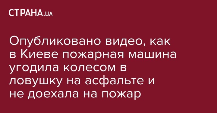 Опубликовано видео, как в Киеве пожарная машина угодила колесом в ловушку на асфальте и не доехала на пожар