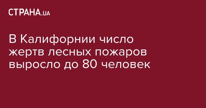 В Калифорнии число погибших в результате масштабных лесных пожаров за день увеличилось с 71 до 80 человек. Об этом сообщает "Интерфакс" со ссылкой на телеканал ABC News.