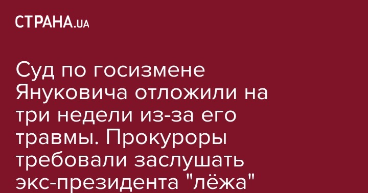 Суд по госизмене Януковича отложили на три недели из-за его травмы. Прокуроры требовали заслушать экс-президента "лёжа"