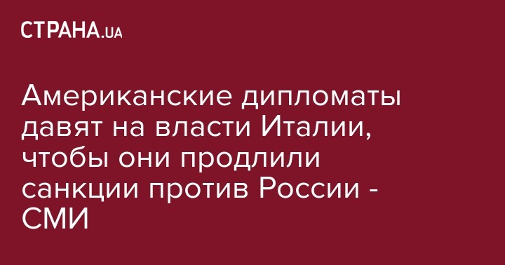 Американские дипломаты давят на власти Италии, чтобы они продлили санкции против России - СМИ