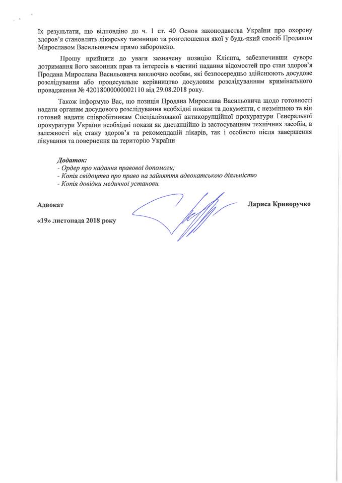 При этом Продан попросил с пониманием отнестись к тому, что он не публикует данную справку в соцсети, ссылаясь на право на личную жизнь.