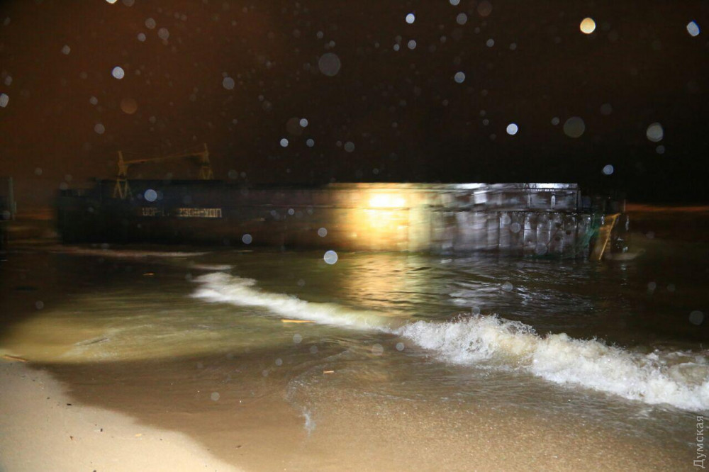 По данным на 22:30. баржа села брюхом на песчаный пляж возле причала №122, но не очень крепко: ее продолжает сносить, за час судно подвинулось в сторону Черноморского порта на 60 метров.