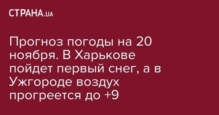 20 ноября первый снег выпадет в Харькове. Температура воздуха тут сохранится на уровне 0...+2 градуса. Также синоптики прогнозируют снег в Луганске, Донецке, Днепре и Запорожье. В этих регионах ожидается такая же погода днем и -1...-3 ночью.