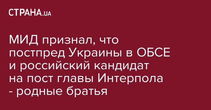 В МИД Украины утверждают, что родственные связи постоянного представителя Украины при ОБСЕ Игоря Прокопчука с кандидатом на должность главы Интерпола генерал-майора российской полиции Александром Прокопчуком, никак не повлияют на его работу. Об этом со ссылкой на пресс-службу МИД сообщает "Украинская правда"