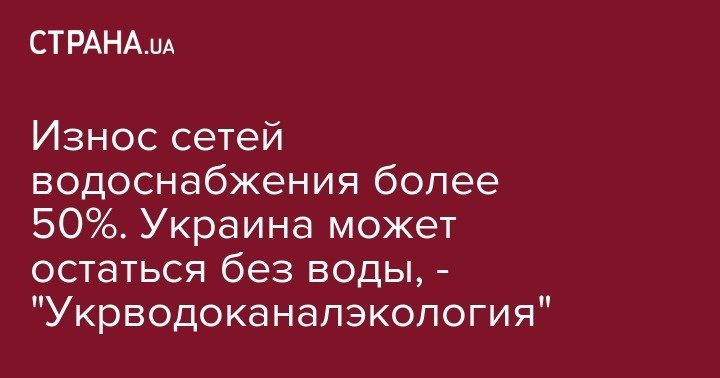 Водоканалы сообщают, что по состоянию на сегодняшний день износ сетей, сооружений и оборудования систем водоснабжения и водоотвода в Украине составляет более 50%, значительно увеличилось количество аварий и потери воды.