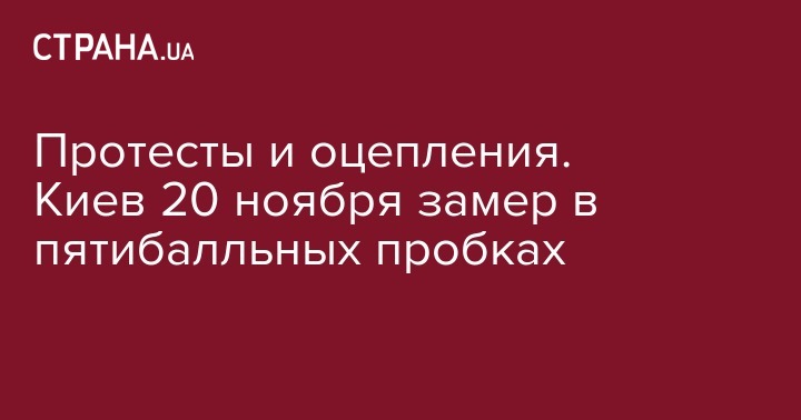 В Киеве сегодня, 20 ноября, по состоянию на 12:45 из-за акции евробляхеров и непогоды наблюдаются пятибалльные пробки. Об этом свидетельствуют данные Googl Maps.