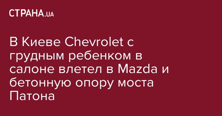 Во вторник, 20 ноября, на Набережном шоссе произошло ДТП, в результате которого Chevrolet столкнулся с Mazda и вылетел в бетонную опору моста Патона. В Aveo находился грудной ребенок. Об этом сообщает "Информатор".