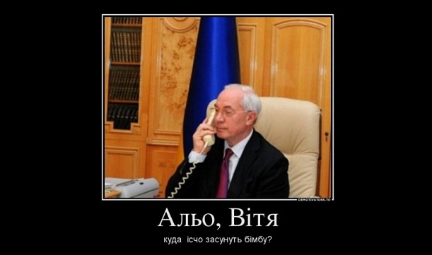 В соцсетях тогда начали набирать популярность фотожабы с премьер-министром Азаровым и подписью: "Альо, міліція?! На Кріщатікі бімба!". А также их вариации.