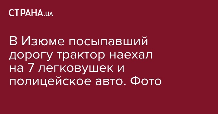 В городе Изюме Харьковской области водитель трактора коммунального предприятия, посыпавшего дорогу, не справился с управлением и наехал на семь легковых автомобилей и припаркованный на обочине служебный автомобиль ВАЗ Изюмского отдела полиции.