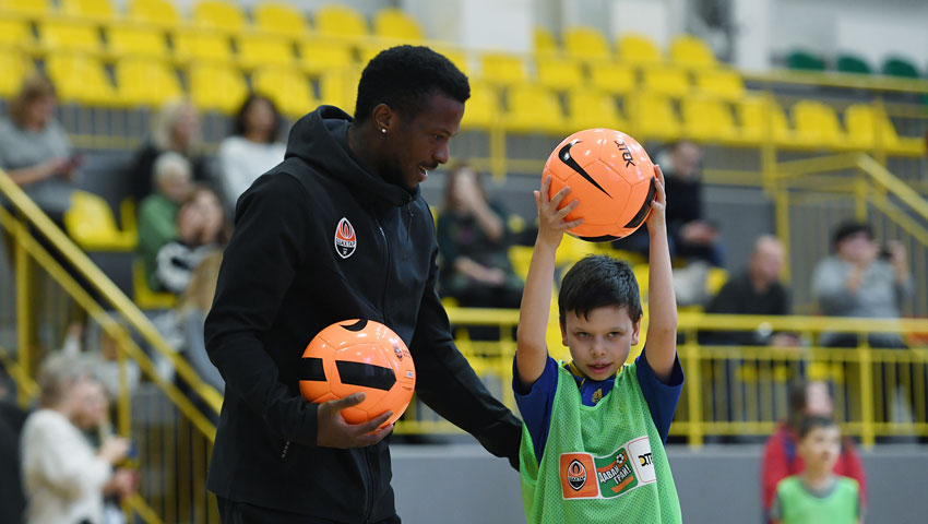 В первой тренировке приняли участие 25 ребят. Заниматься с ними приехали тренеры "Шахтера" Нуну Кампуш и Антониу Феррейра, а также игроки команды Андрей Тотовицкий и Оларенважу Кайоде. Звездные гости выполняли упражнения вместе с детьми, подбадривали их и показывали все на личном примере. В завершении ребята получили подарки и автографы и сделали совместное фото.