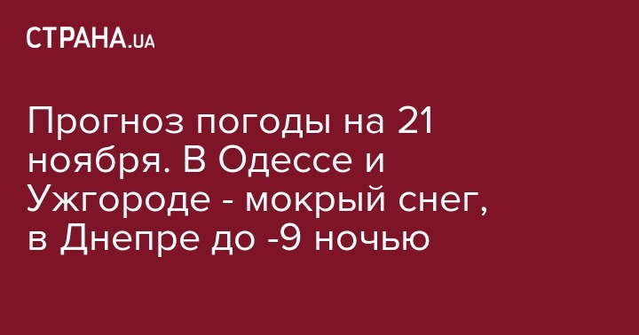 Прогноз погоды на 21 ноября. В Одессе и Ужгороде - мокрый снег, в Днепре до -9 ночью