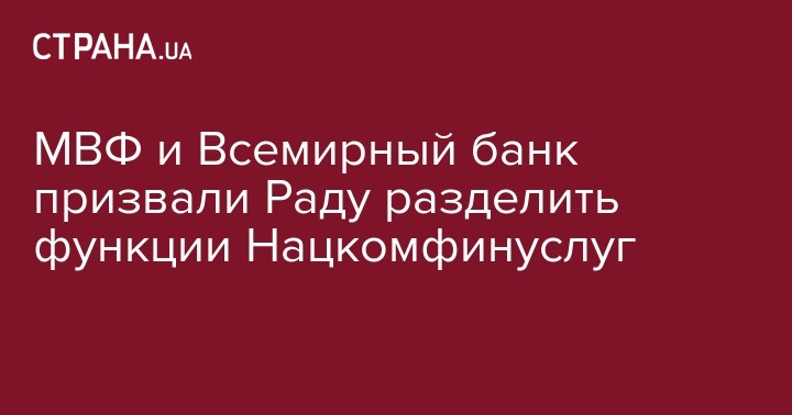 Всемирный банк и Международный валютный фонд призывают Верховную Раду 22 ноября принять в целом законопроект, разделяющий функции Нацкомфинуслуг между Нацбанком и Нацкомиссией ценных бумаг и фондового рынка. Об этом сказано в совместном заявлении МВФ и ВБ в среду, пишет Интерфакс-Украина.