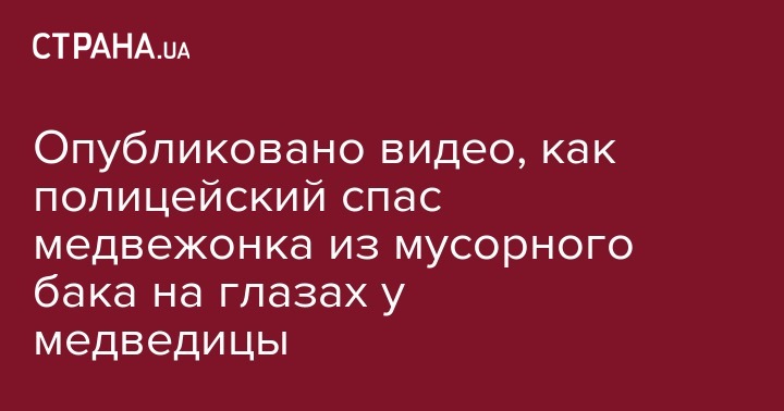 Опубликовано видео, как полицейский спас медвежонка из мусорного бака на глазах у медведицы