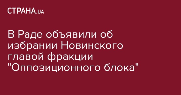 По информации агентства, о вступлении в должность Новинского объявил председатель Верховной Рады Андрей Парубий. Заместителями нового главы "Оппоблока" стали народные депутаты Александр Вилкул (который ранее был сопредседателем) и Юрий Воропаев.