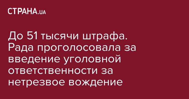 Согласно законопроекту, в Уголовный кодекс включена ст. 286-1, согласно которой управление транспортными средствами в состоянии алкогольного, наркотического или другого опьянения или под воздействием лекарственных препаратов, снижающих внимание и скорость реакции, наказывается штрафом от 1 000 до 2 000 необлагаемых минимумов доходов граждан (17 000 - 34 000 гривен) с лишением права управлять транспортными средствами на срок до 3 лет. За те же действия, совершенные повторно, предусмотрен штраф в размере до 3 000 необлагаемых минимумов доходов граждан (51 000 гривен) с лишением права управления транспортными средствами на срок от 2 до 3 лет.