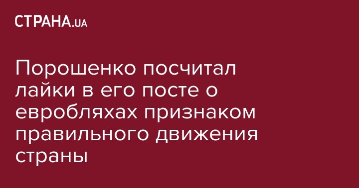 "Мне приятно, что, как только я выставил этот пост на своем Фейсбуке, 10 тысяч лайков было за 3 часа. Это тоже признак того, что мы правильно двигаемся", - подчеркнул Порошенко.