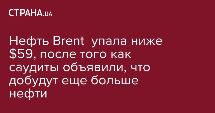 Нефть Brent упала ниже $59, после того как саудиты объявили, что добудут еще больше нефти