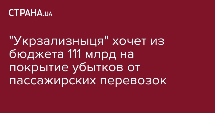 "Укрзализныця" хочет из бюджета 111 млрд на покрытие убытков от пассажирских перевозок