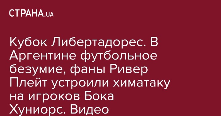 В субботу 24 ноября, в Буэнос - Айресе должен был состояться ответный поединок финала Кубка Либертадорес (это южноамериканский вариант Лиги чемпионов - Прим. Ред.) между клубами Ривер Плейт и Бока Хуниорс . Однако перед матчем вспыхнули беспорядки, фаны Ривер Плейта забросали камнями автобус с игроками Бока Хуниорс и применили против них перечный газ. Игру пока перенесли на два часа. Об этом сообщает "Интерфакс".