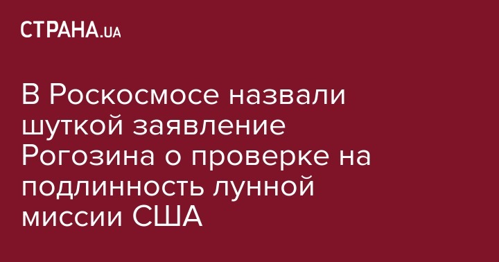 В громкой истории с заявлениями главы "Роскосмоса" Дмитрия Рогозина о том, что еще нужно проверить, действительно ли американцы побывали на Луне - можно ставить официальную точку. В "Роскосмосе" заявили, что это предложение Дмитрия Рогозина было простой шуткой. Об этом передает РБК со ссылкой на РИА Новости.