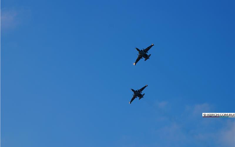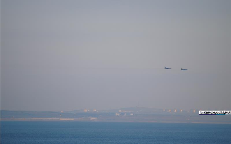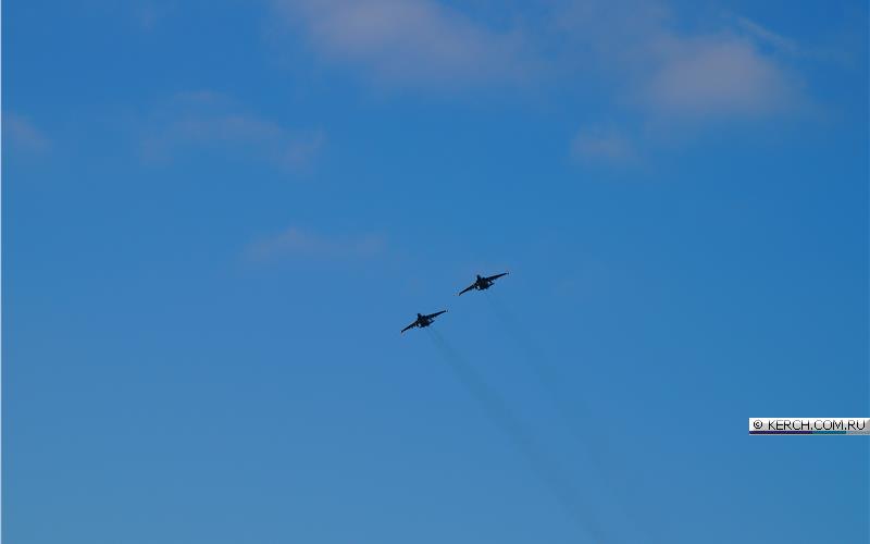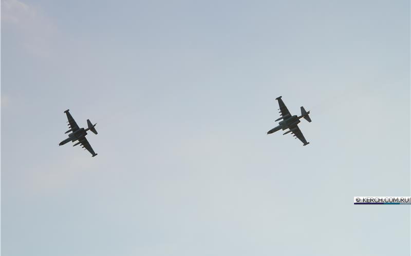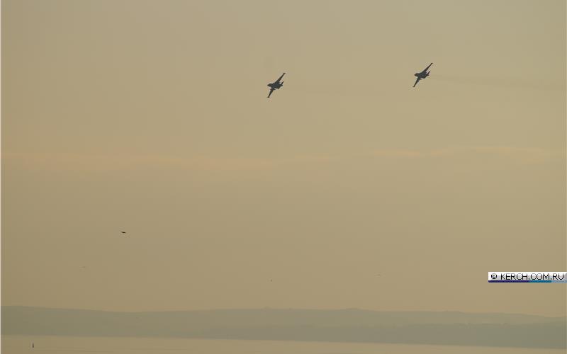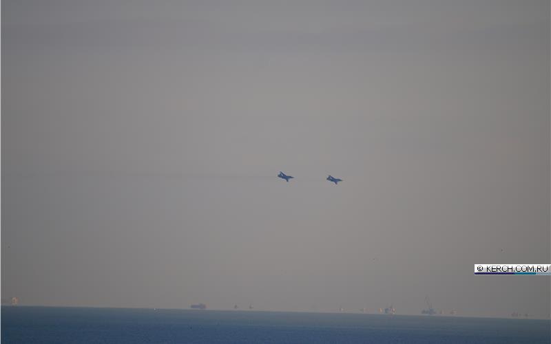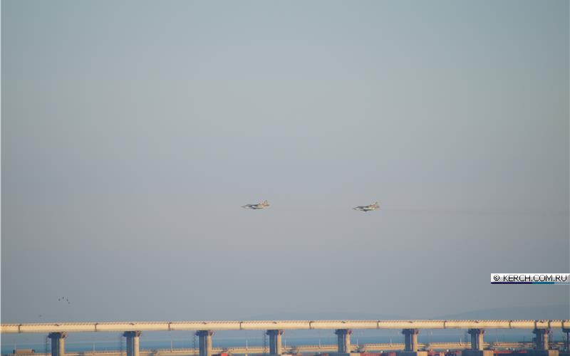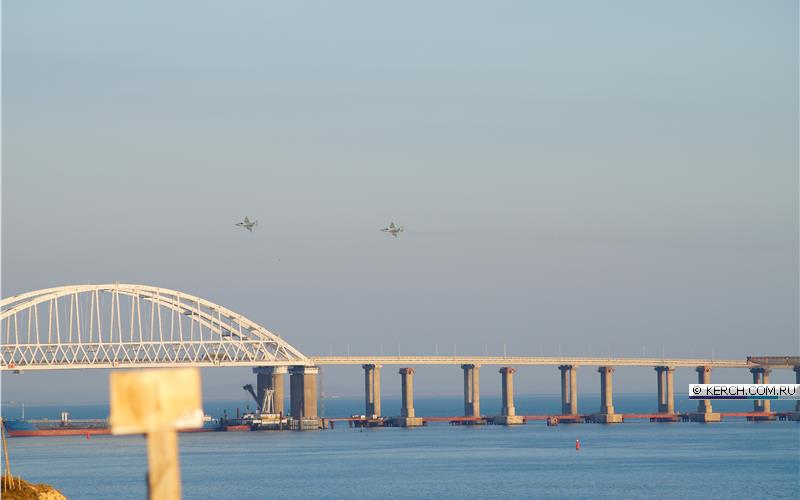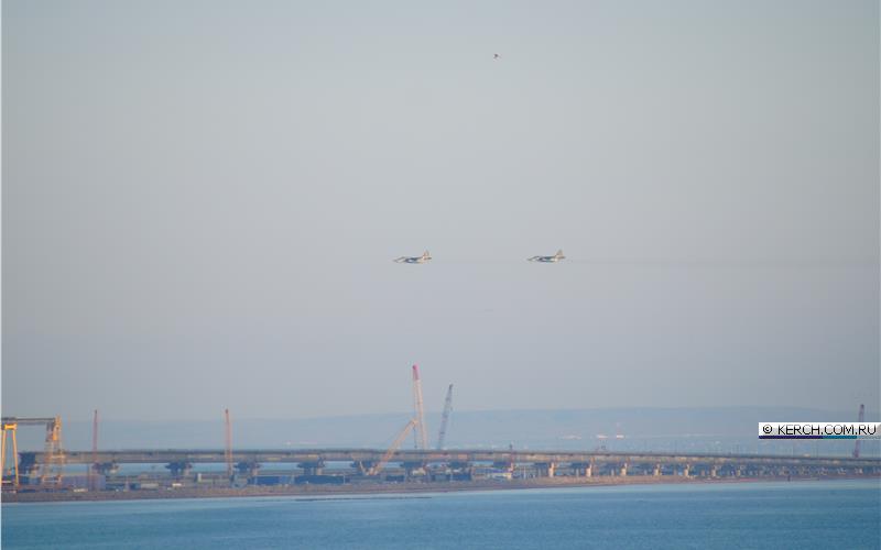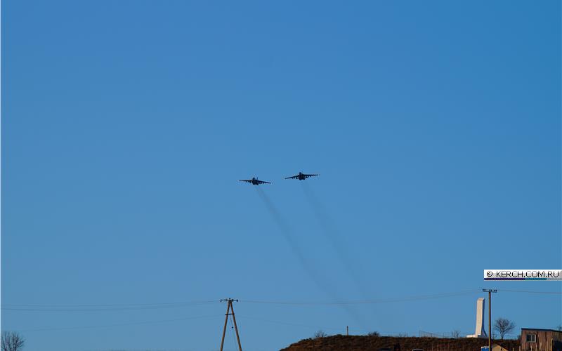 Судя по снимкам, штурмовики пролетели вдоль Крымского моста и городом Керчь. Боевые машины видел житель города Алексей Ягодинский.