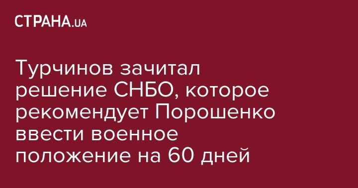 Турчинов зачитал решение СНБО, которое рекомендует Порошенко ввести военное положение на 60 дней