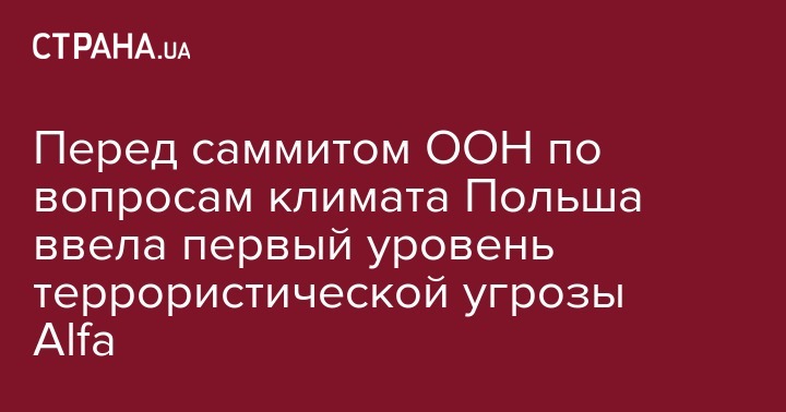 Перед саммитом ООН по вопросам климата Польша ввела первый уровень террористической угрозы Alfa