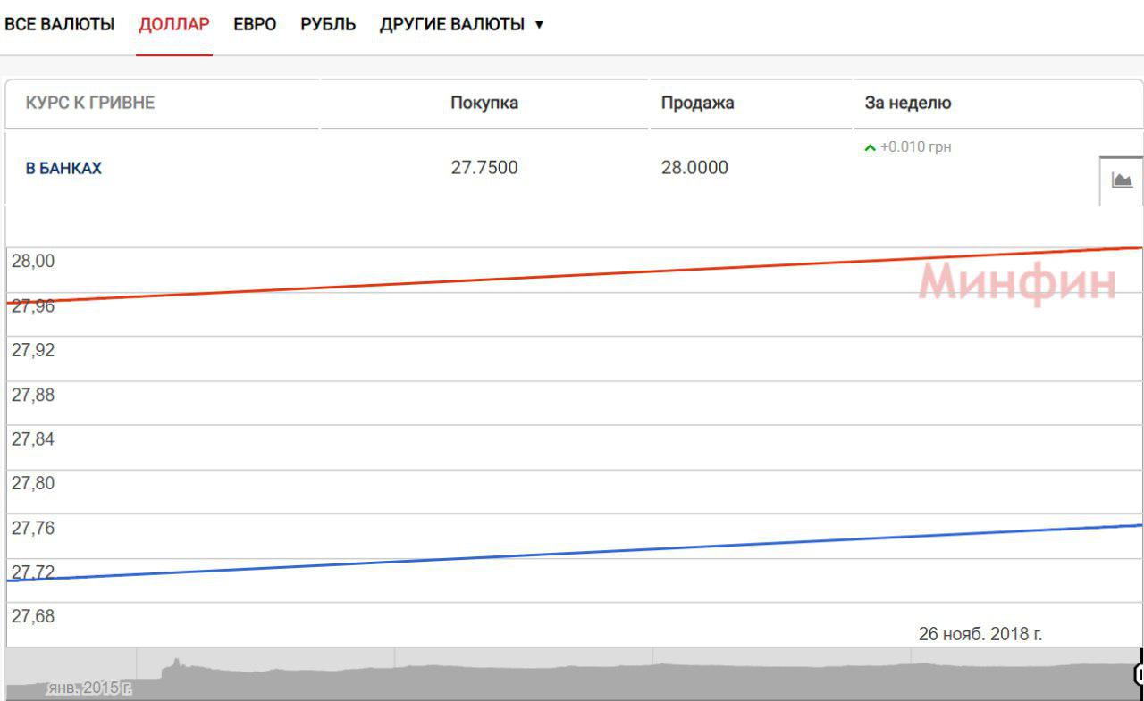 В понедельник, 26 ноября, на черном рынке и пунктах обмена валют в Киеве начал расти наличный курс доллара США. С утра официальный курс от НБУ был 27,80 гривны за $1.