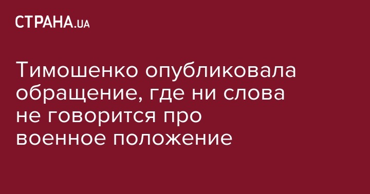 Тимошенко опубликовала обращение, где ни слова не говорится про военное положение