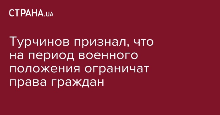 Секретарь Совета национальной безопасности и обороны Украины Александр Турчинов заявил, что на период военного положения могут ограничиваться конституционные права и свободы граждан. Об этом Турчинов заявил в ходе заседания Рады, передает РБК-Украина.