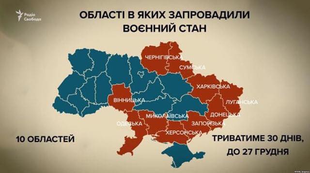 Однако это не тотальный контроль, которого добивался президент. А если в областях, попавших под военное положение, начнется форменный военный беспредел, об этом будут говорить центральные СМИ, которые не затронуты указом президента (в случае введения ВП на территории всей страны, киевские медиа можно было бы закрыть или отжать). И тогда рейтинг главы государства за этот предновогодний месяц начнет лететь вниз быстрее, чем это происходило бы без всякого военного положения.
