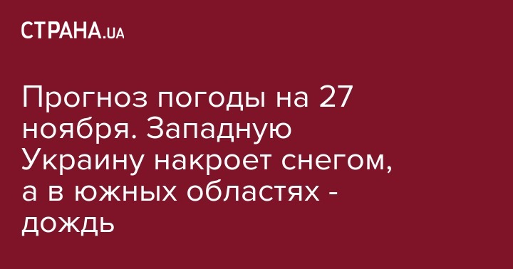 Во вторник, 27 ноября, в Украине будет пасмурно. Местами ожидаются дожди и мокрый снег. Об этом свидетельствует прогноз, размещенный на сайте Укргидрометцентра.