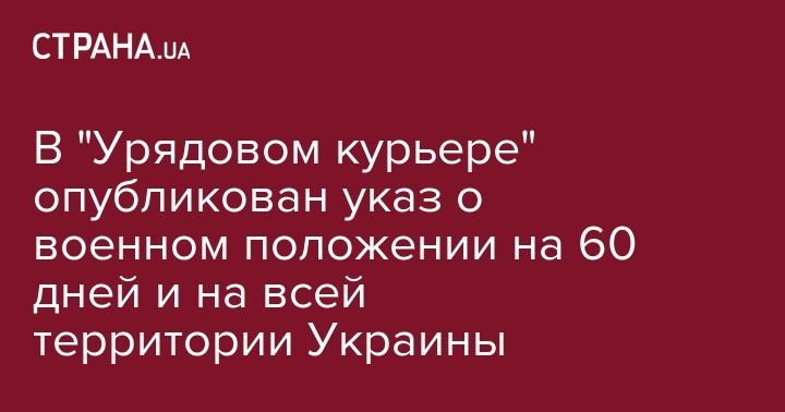В "Урядовом курьере" опубликован указ о военном положении на 60 дней и на всей территории Украины
